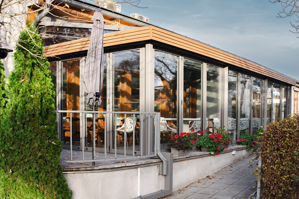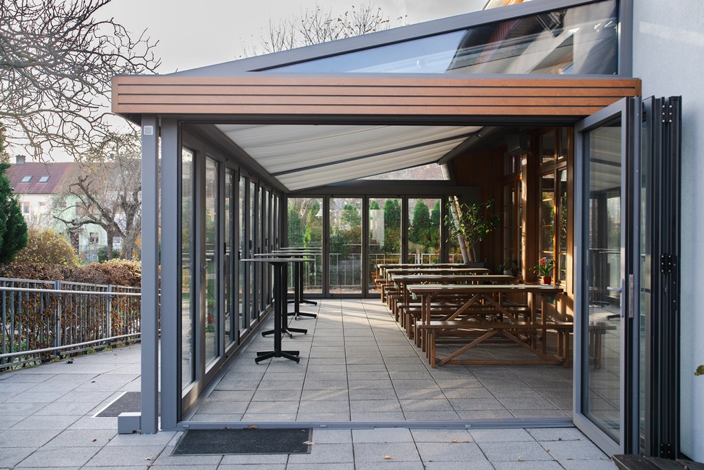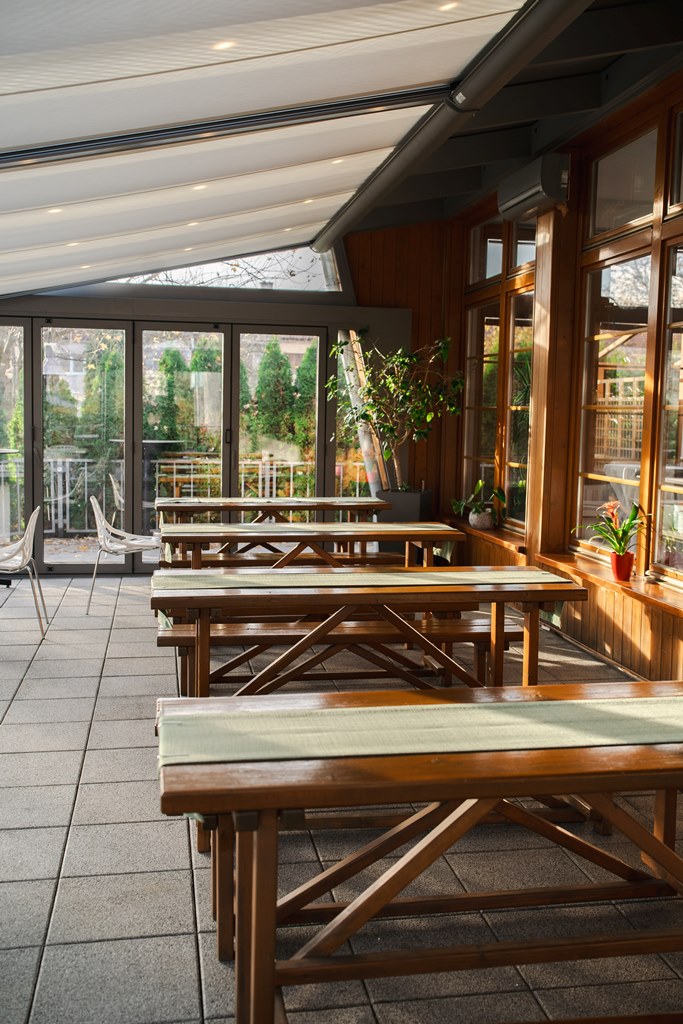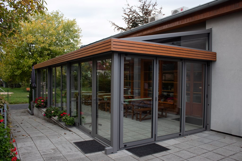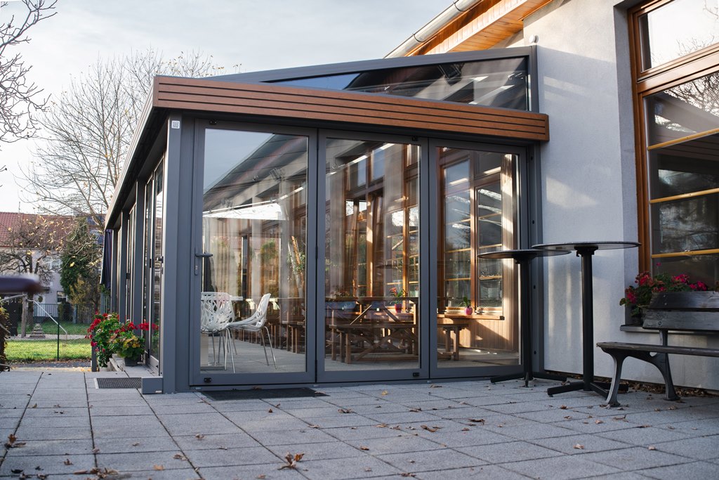 Terasa navazuje přímo na prostory foyer a v zimním i letním obdobím je možné využí naší zimní zahradu o velikosti 12 x 7 metrů.
